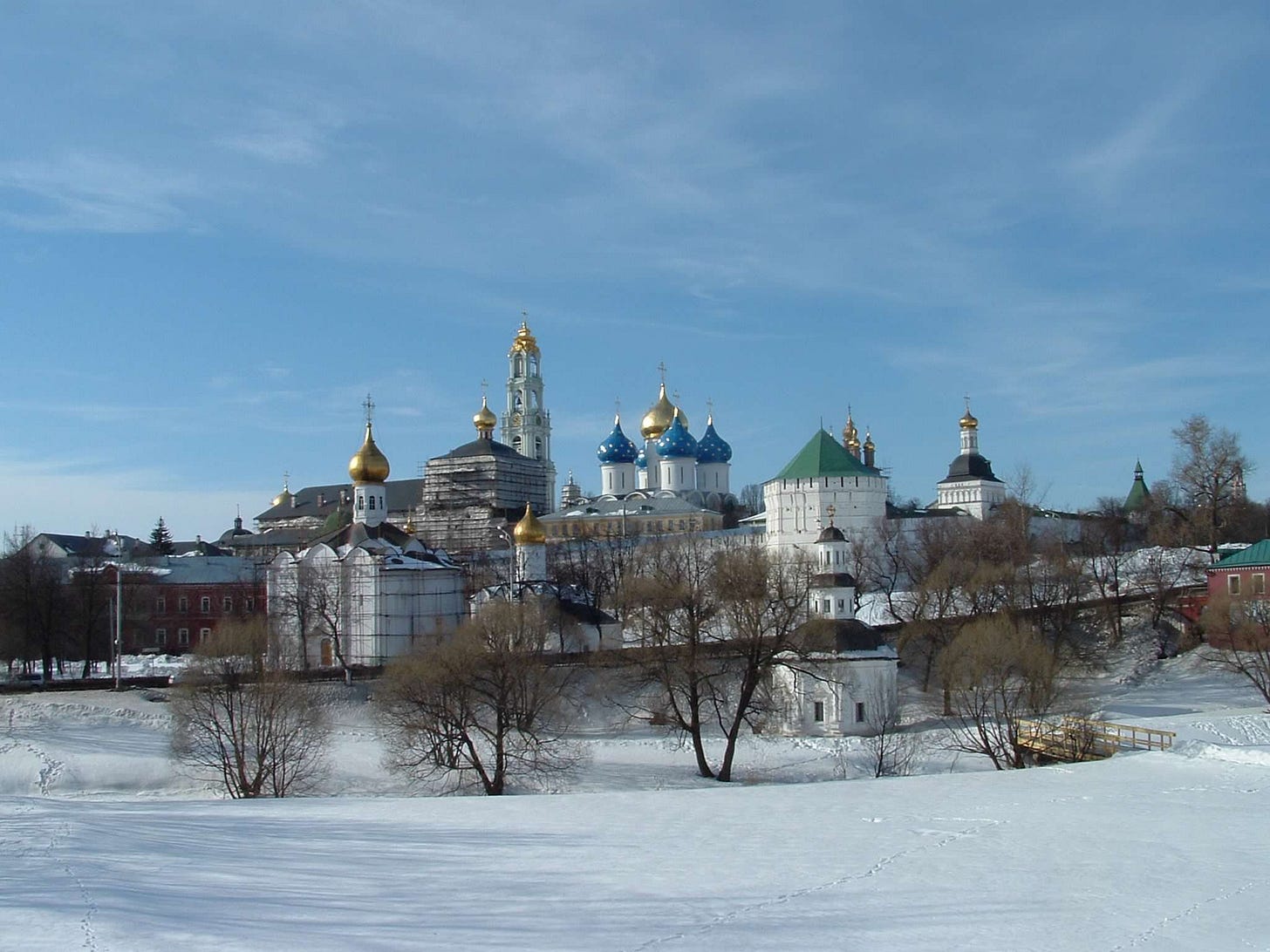 The photo my father sent shows snow-covered sidewalks and bare birch trees, someone shoveling in the distance. I have older photos very similar to it—different apartments, different winters, a different someone shoveling in the distance. Different times I’ve sat in small rooms being served cucumbers with dill, or blini pancakes.