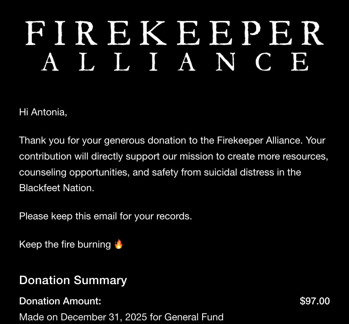 Every quarter, On the Commons returns 5% of profits (calculated before Stripe and Substack take their percentage) to a different not-for-profit organization. Most of these are Indigenous-founded and Indigenous-led non-profits in and around Montana, where I live. I sometimes choose others serving pressing needs in my area.
